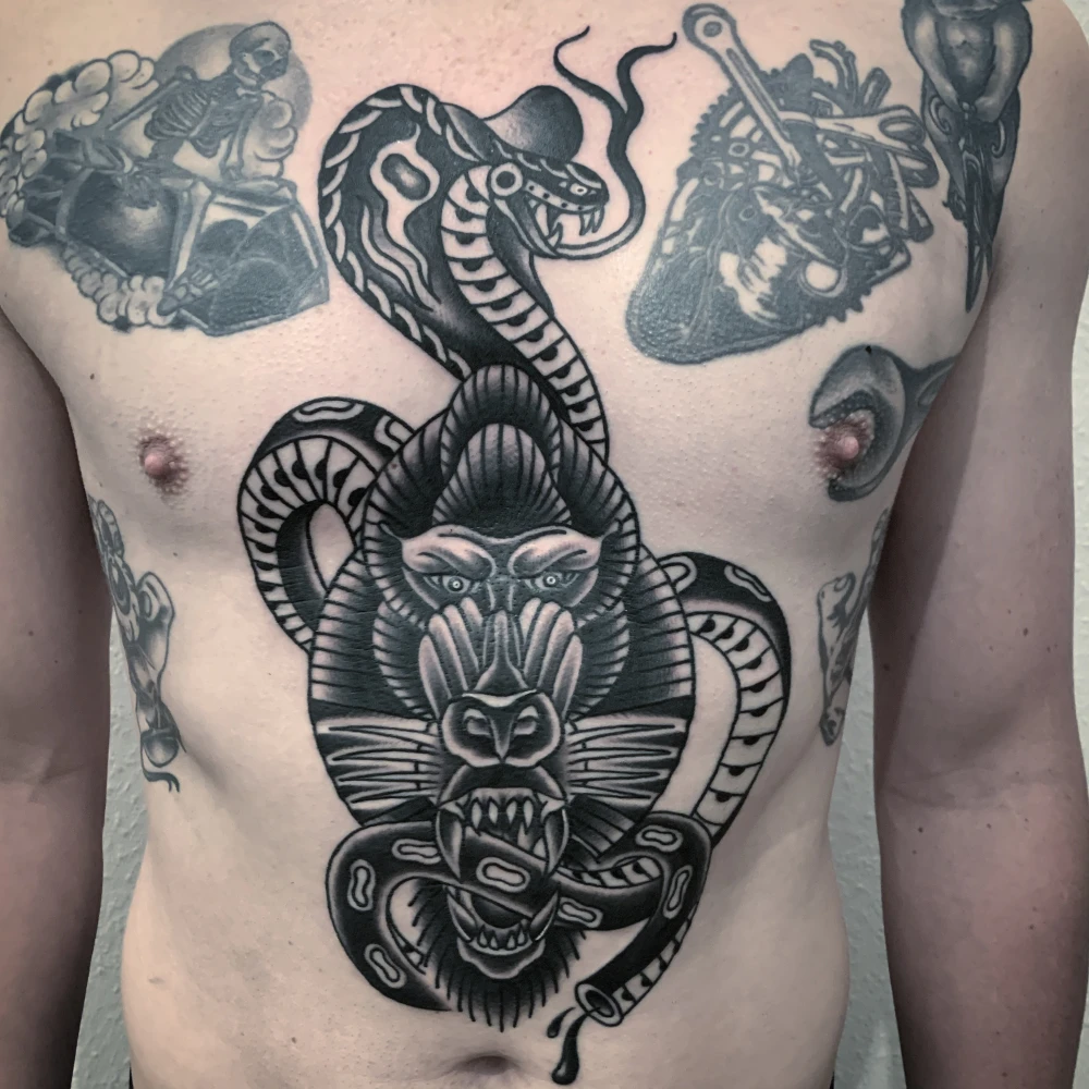 Berlin ist mein Atelier, die Haut meine Leinwand. Seit 2007 bringe ich Farbe und Form zusammen – von knallig-bunten Oldschool-Motiven bis zu kraftvollem Blackwork. Jedes Tattoo ein Statement, präzise und für die Ewigkeit. Kreativität kennt keine Grenzen: Auch hinter der Kamera erzähle ich Geschichten, die bleiben.