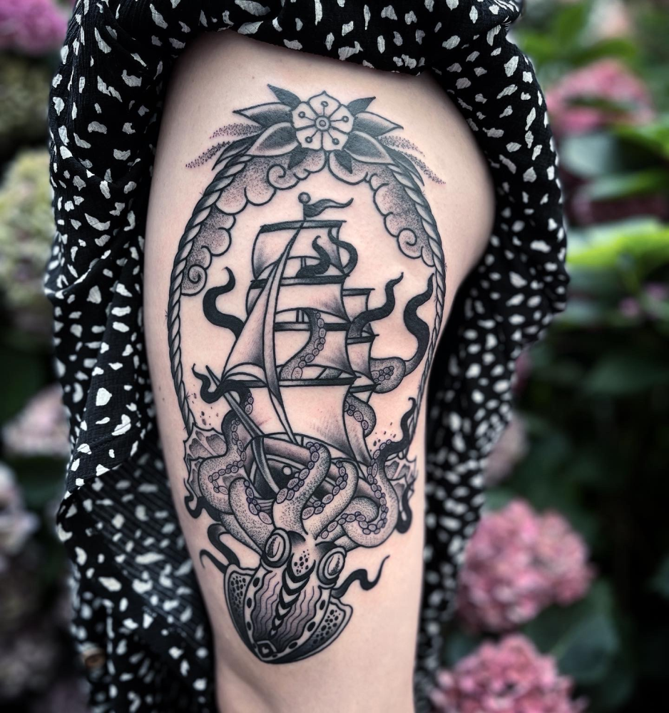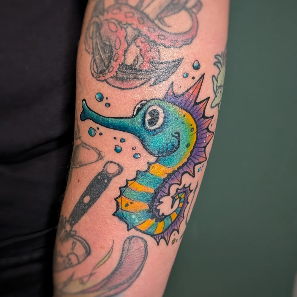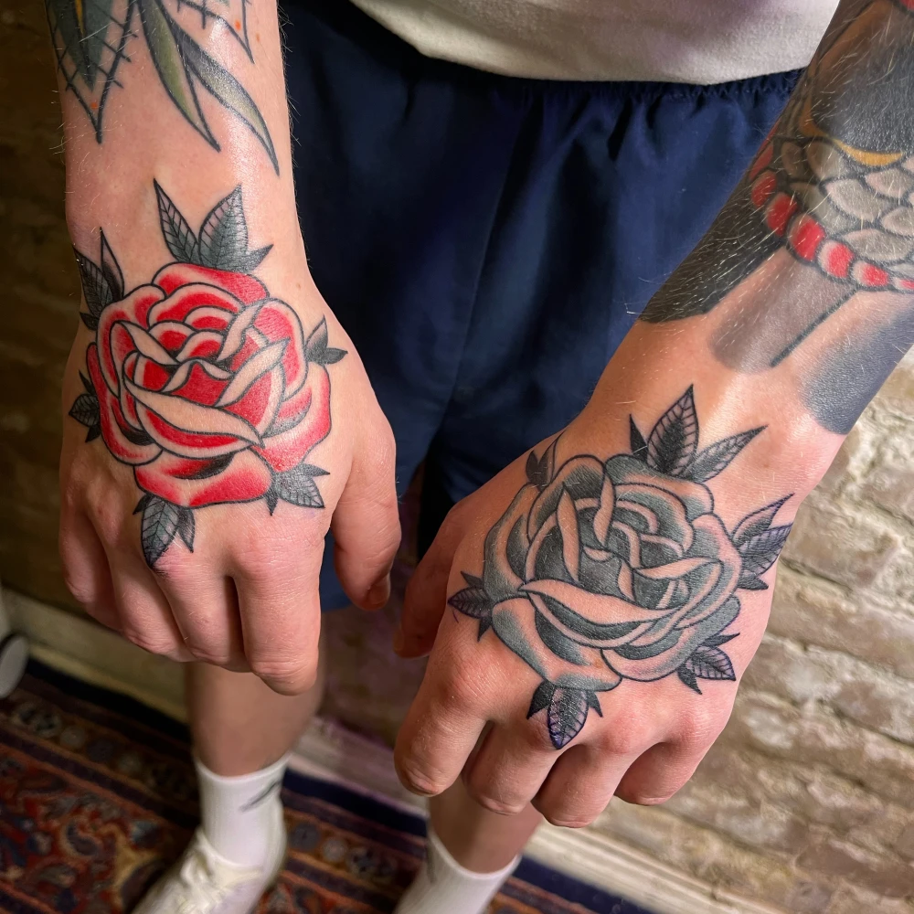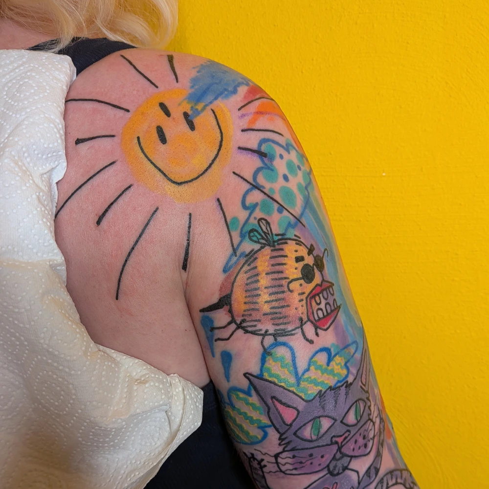 Berlin ist mein Atelier, die Haut meine Leinwand. Seit 2007 bringe ich Farbe und Form zusammen – von knallig-bunten Oldschool-Motiven bis zu kraftvollem Blackwork. Jedes Tattoo ein Statement, präzise und für die Ewigkeit. Kreativität kennt keine Grenzen: Auch hinter der Kamera erzähle ich Geschichten, die bleiben.